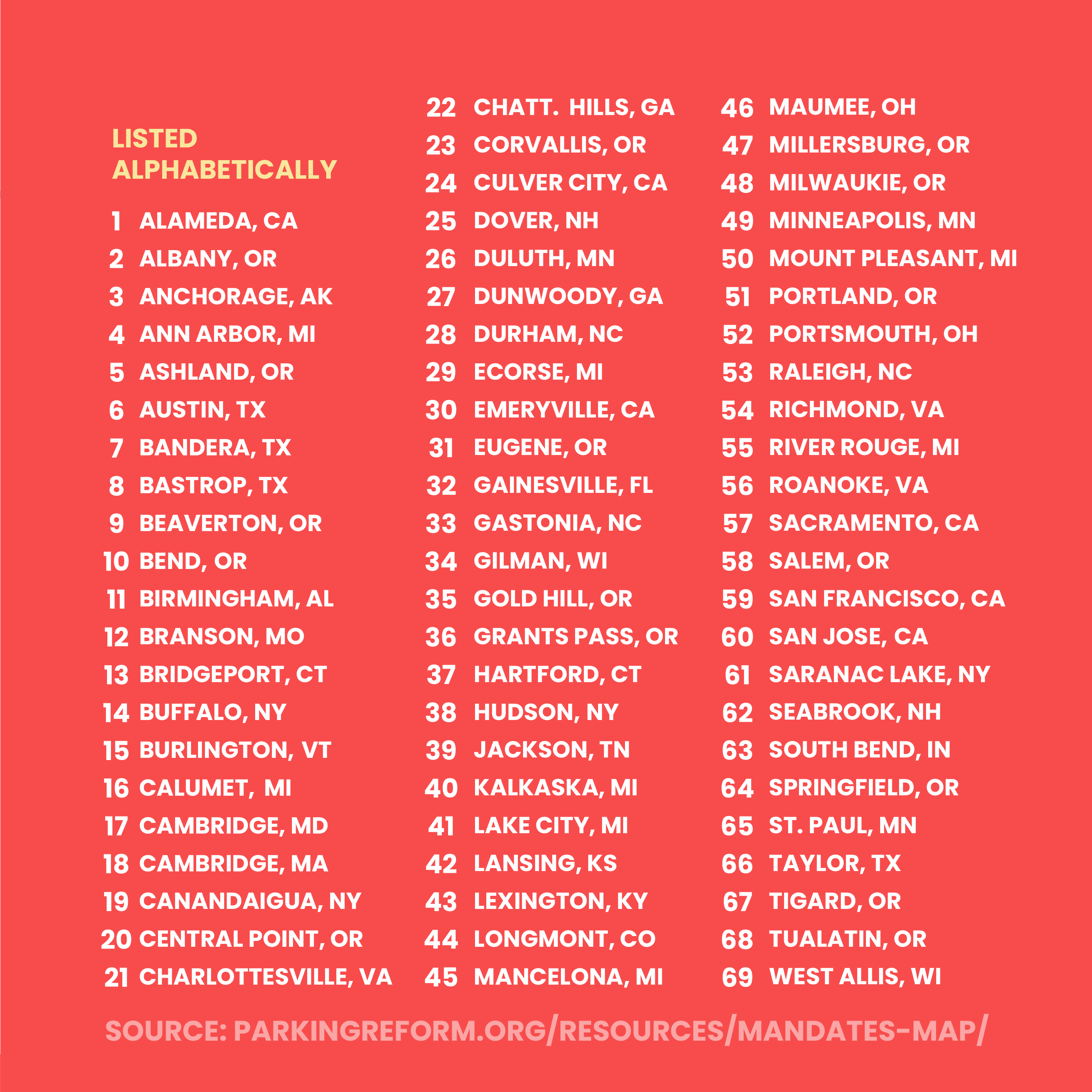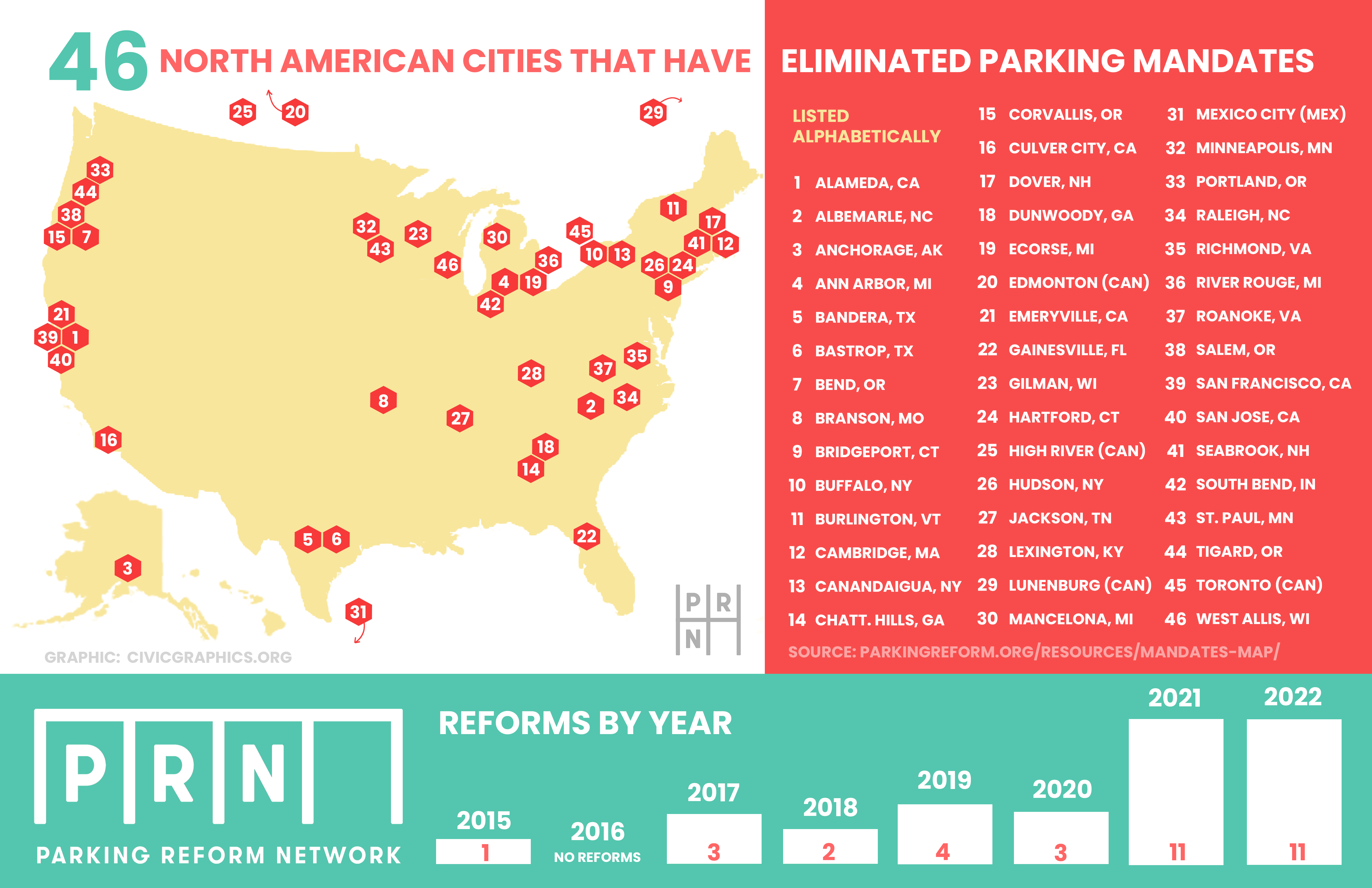 Parking Mandate Elimination Reforms Map for