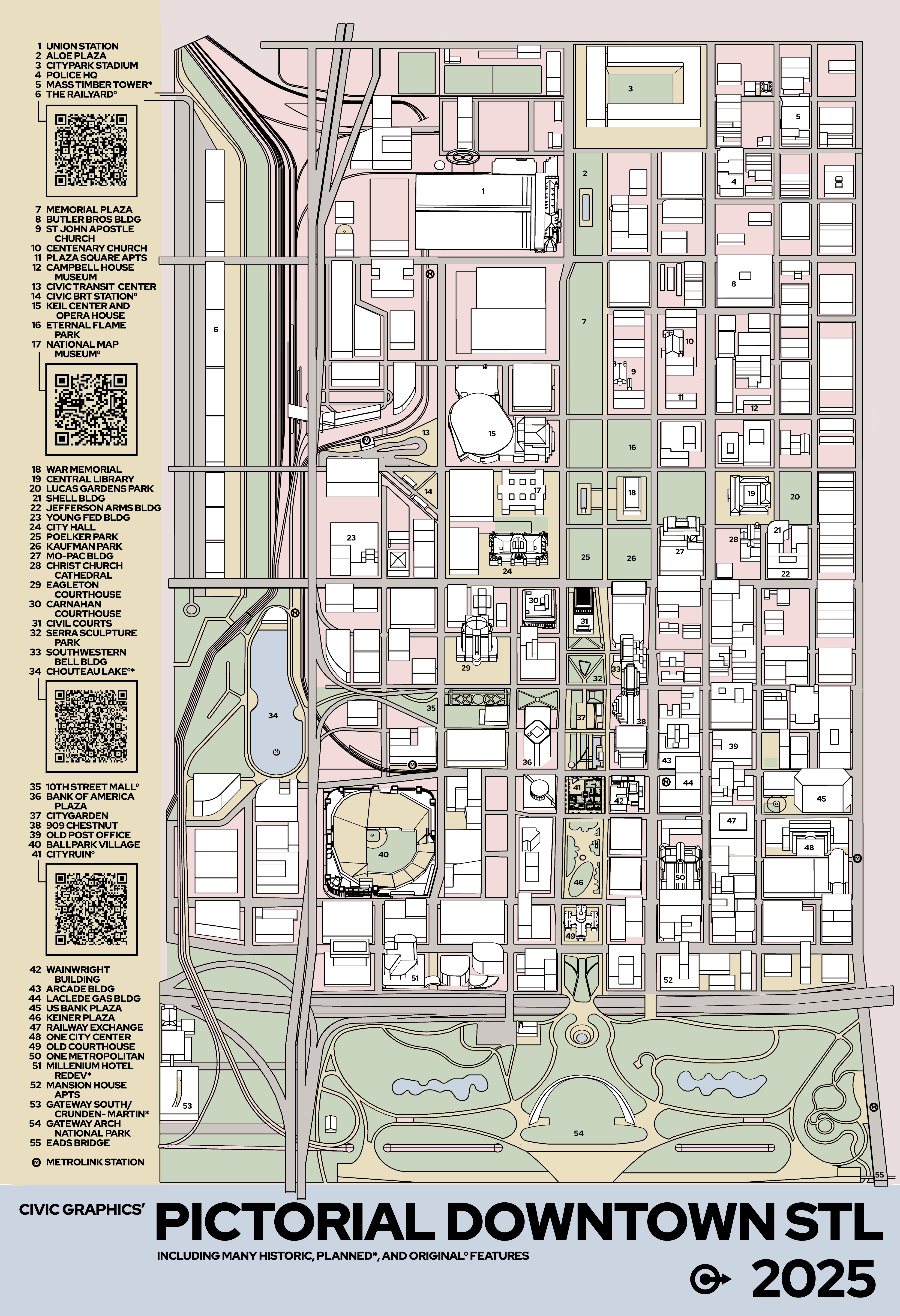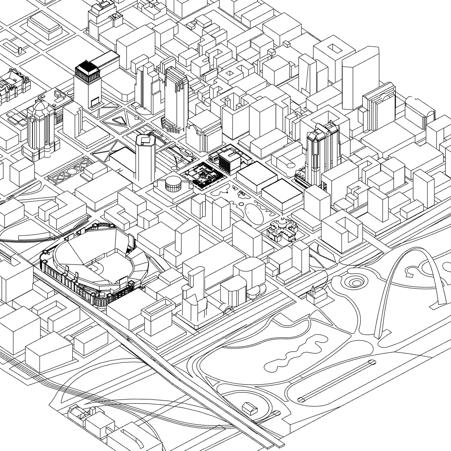 Pictorial downtown STL Poster Illustration and 3D model